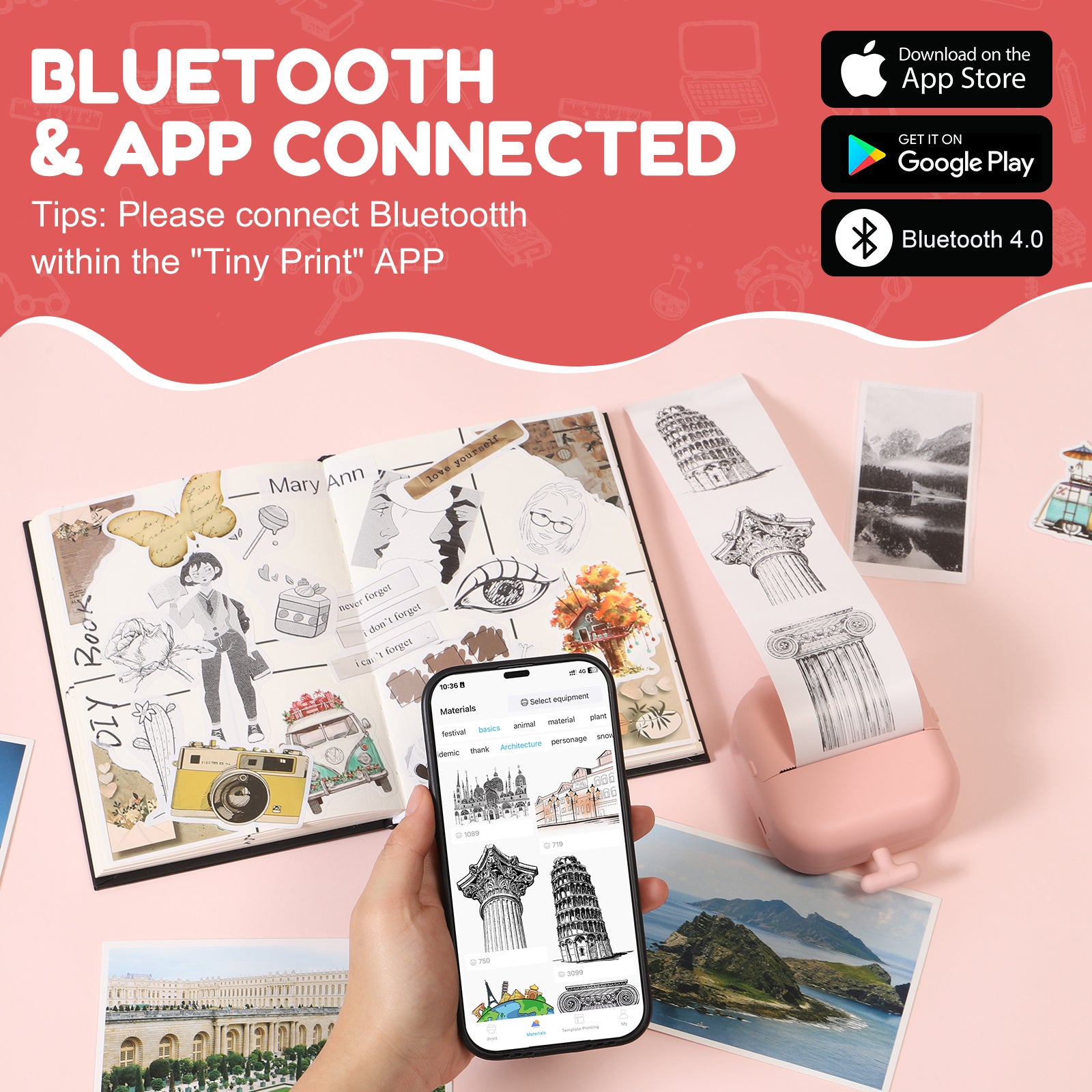 Turn your ideas into stickers and prints anytime with this playful Thermal Mini Printer. Its inkless technology means no mess, while Bluetooth connectivity makes printing from your phone quick and easy. Perfect for notes, receipts, photos, or DIY fun, this compact pocket printer works seamlessly with both iOS and Android devices. Carry creativity wherever you go!