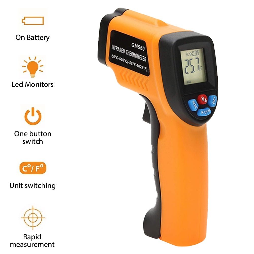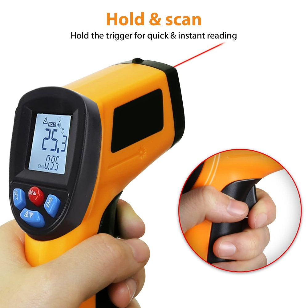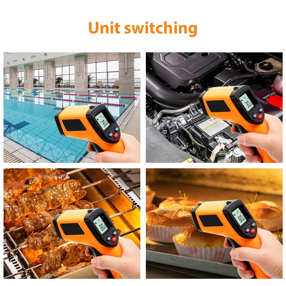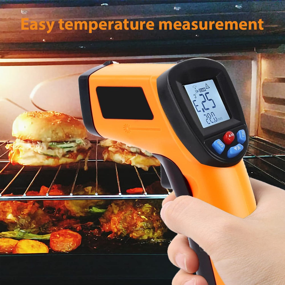 Keep your kitchen cool and your cooking hotter with this Laser Infrared Thermometer Food Digital Temperature Gun! Just point, click, and get an instant, accurate read on your food’s temperature without any contact. Perfect for grilling, baking, or checking leftovers, it makes sure every bite is cooked just right. Say goodbye to guesswork and hello to perfectly tasty meals every time!