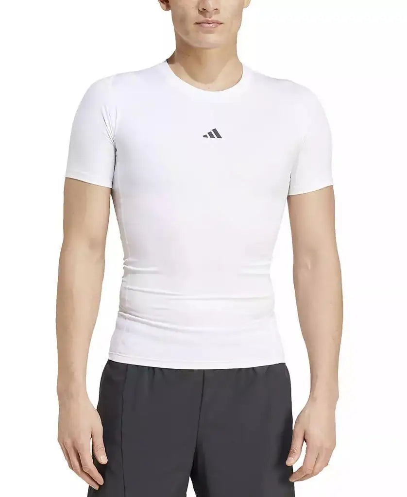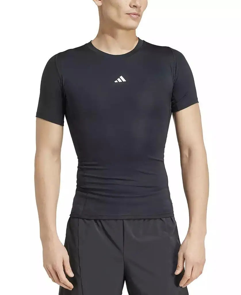 Custom-designed for a focused workout experience, this signature compression T-shirt from adidas wicks away moisture, protects you from sun damage and keeps you concentrated on your performance.