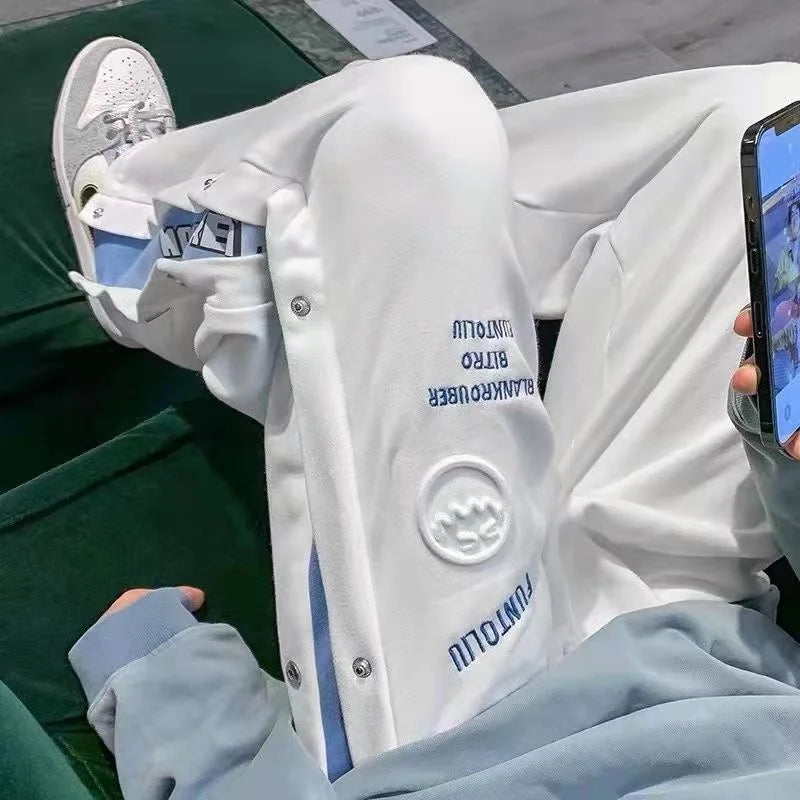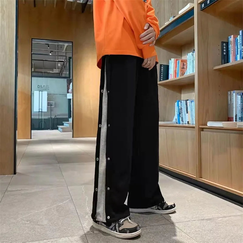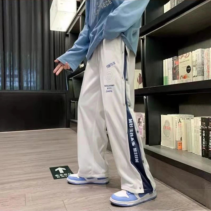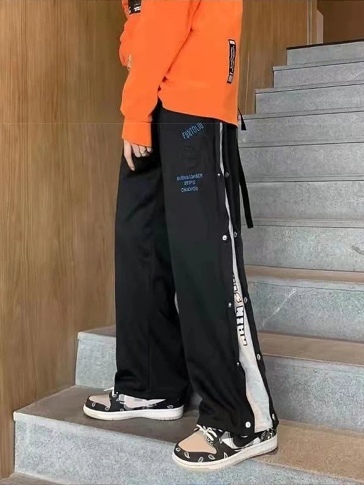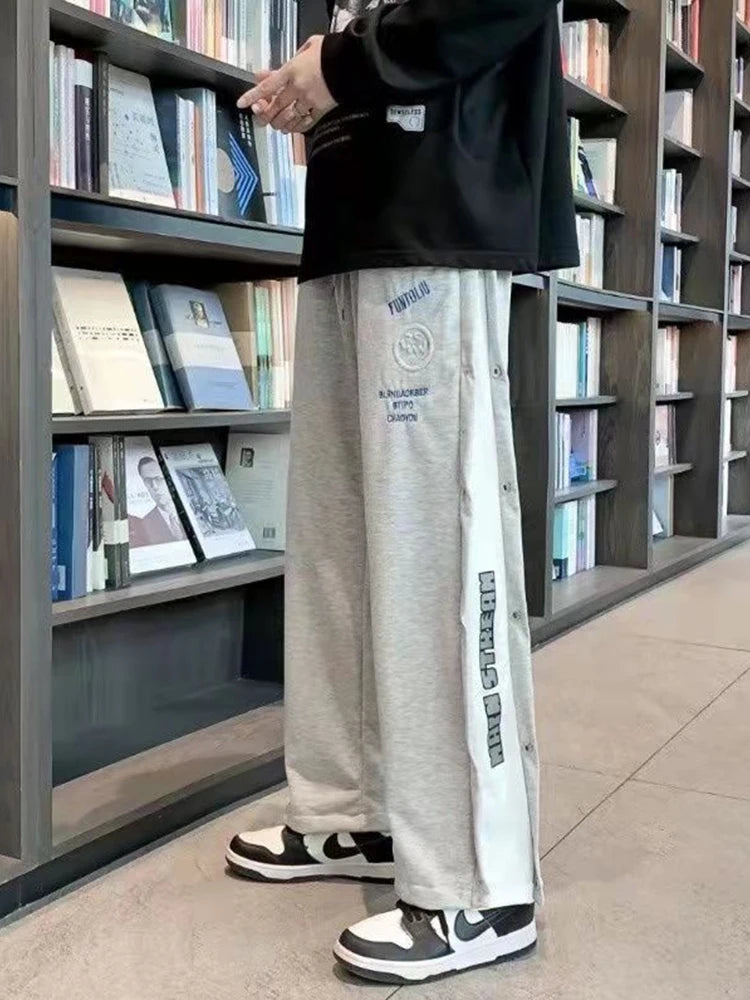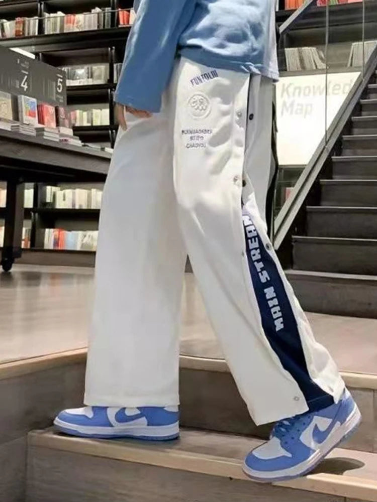 Bring a fresh twist to casual with these men's breasted sports pants. Featuring fun patchwork details and a loose, comfy fit, they’re perfect for easygoing days with a sporty edge. Playful, relaxed, and ready for anything, these trousers add personality to your everyday look.