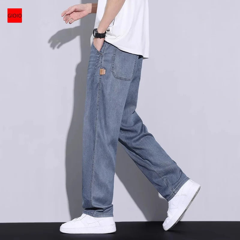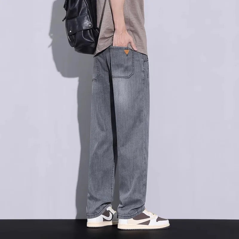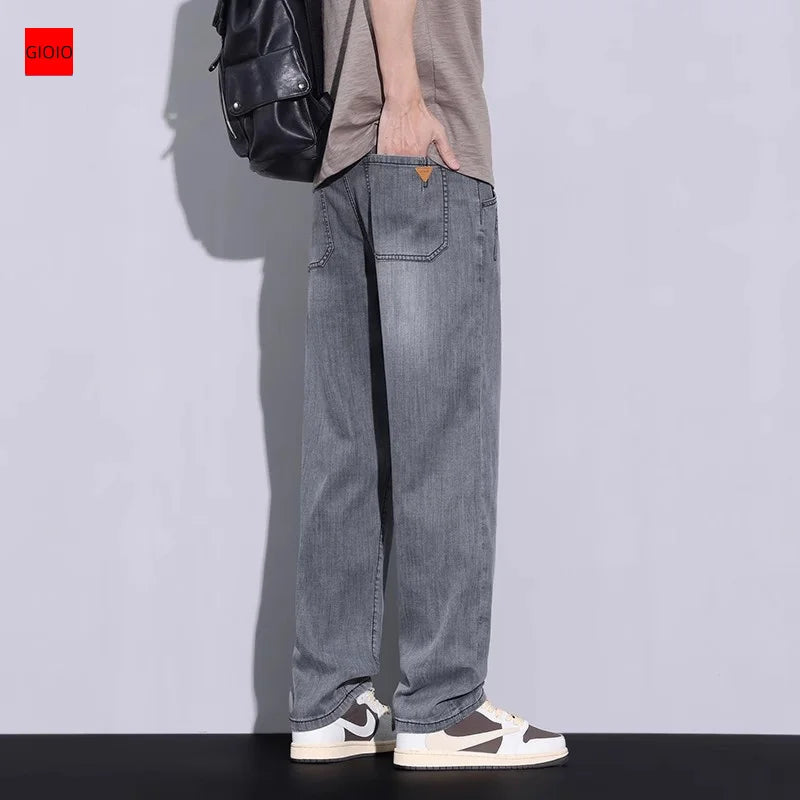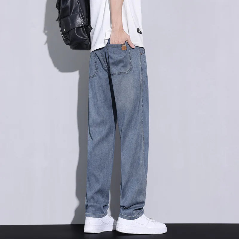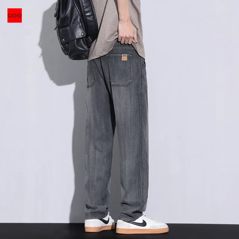 Experience laid-back cool with these men's straight, loose drawstring jeans. Their wide denim cut adds streetwear edge while the adjustable drawstring keeps comfort in check. Perfect for casual days when you want to feel free and look effortlessly stylish.