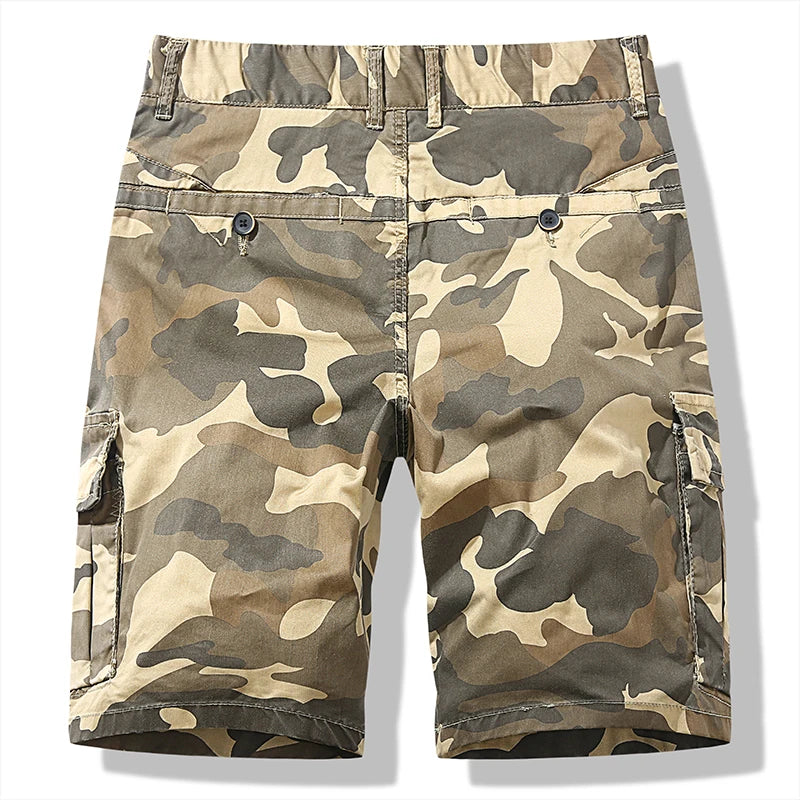 Get ready for adventure with these men's camouflage cotton cargo shorts. Knee-length and packed with pockets, they offer unbeatable comfort and practical style for every casual day. The breathable cotton keeps you cool while the classic camo pattern adds a bold twist to your look. Whether you're exploring the city or the outdoors, these shorts are your fun and functional go-to.