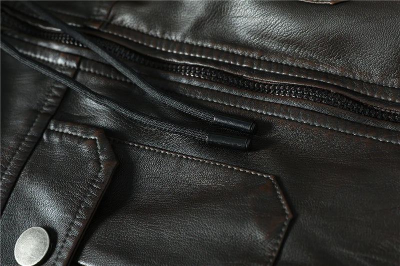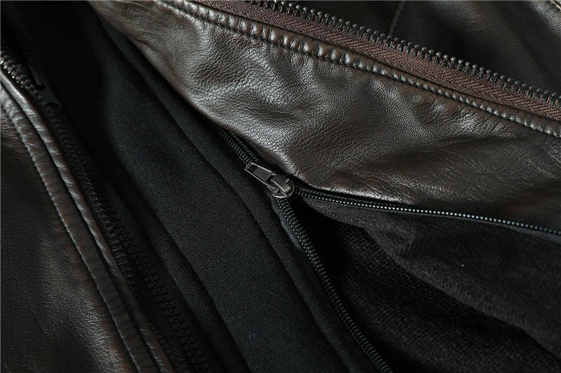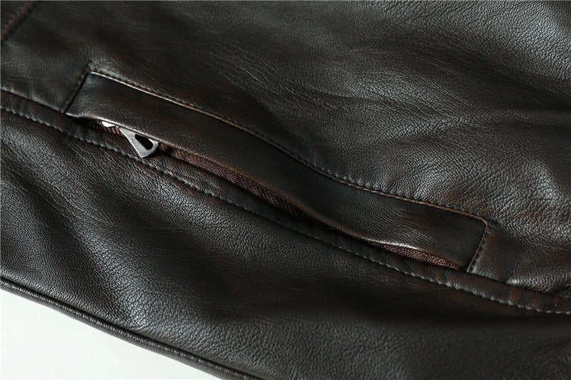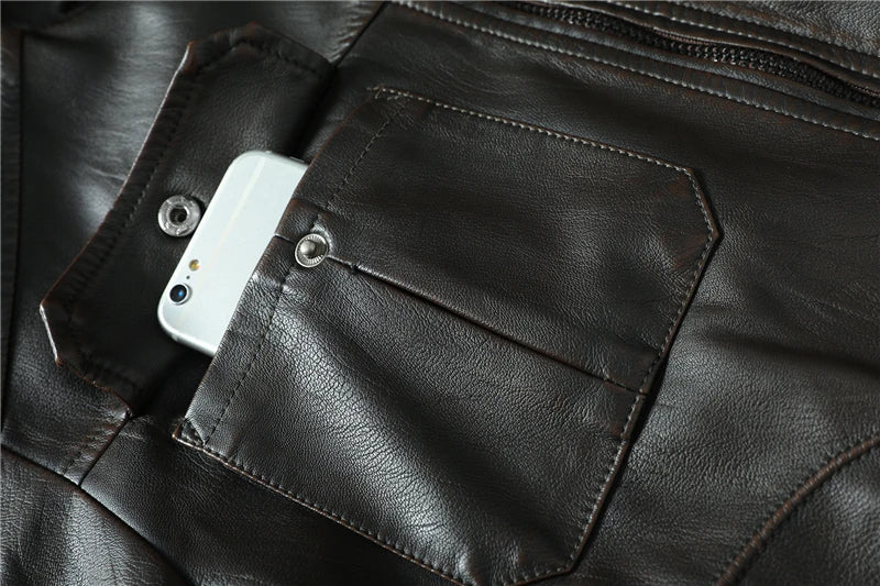 Quality Leather Men's Jacket Classic with Fleece Collar