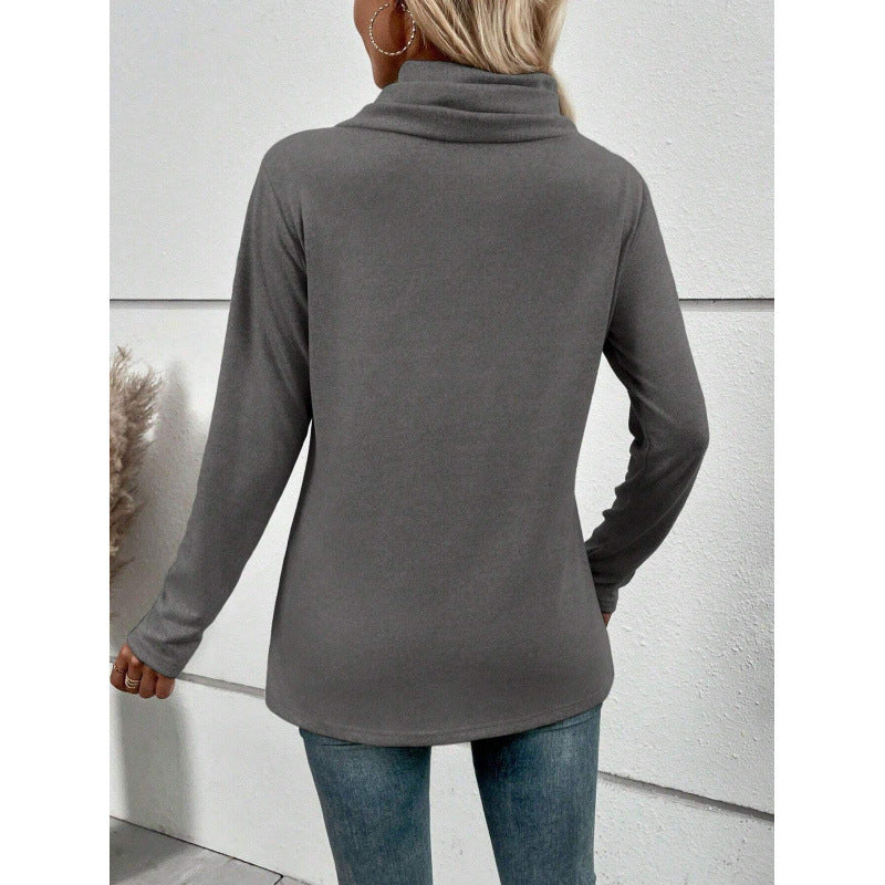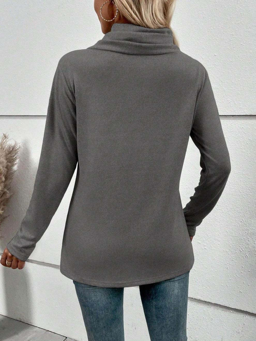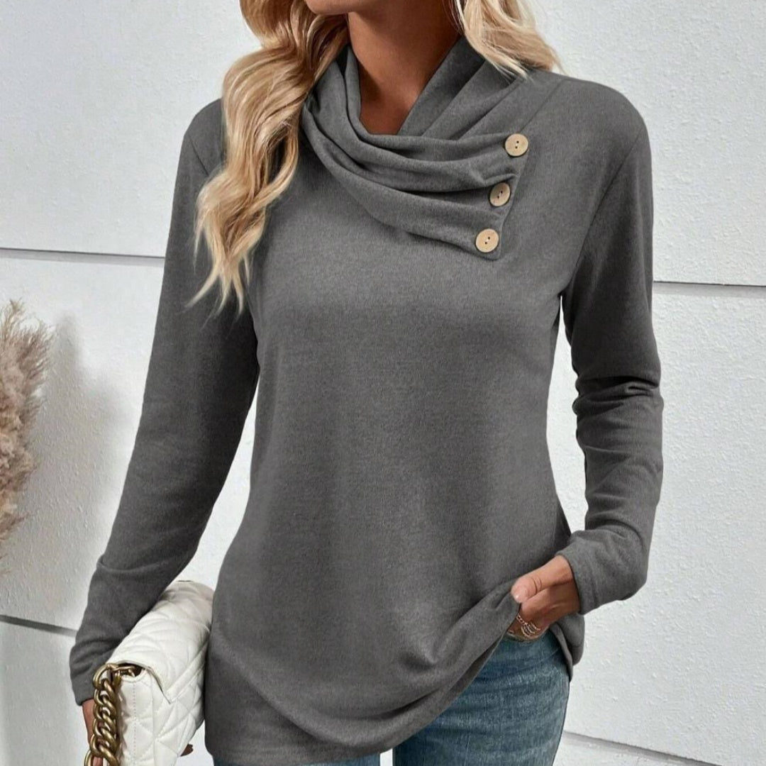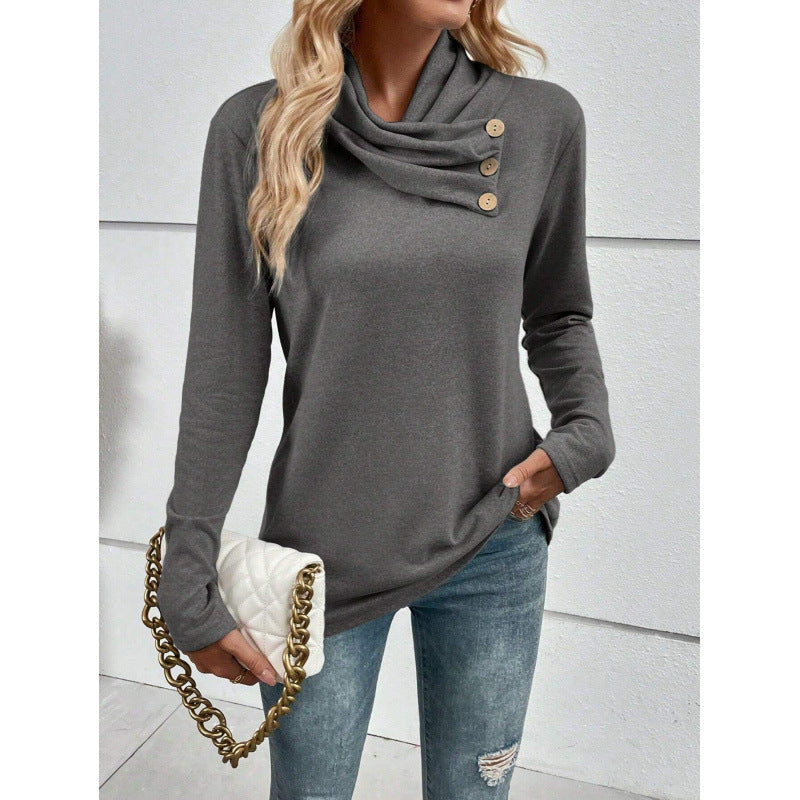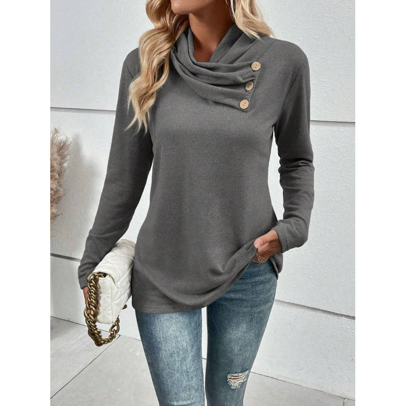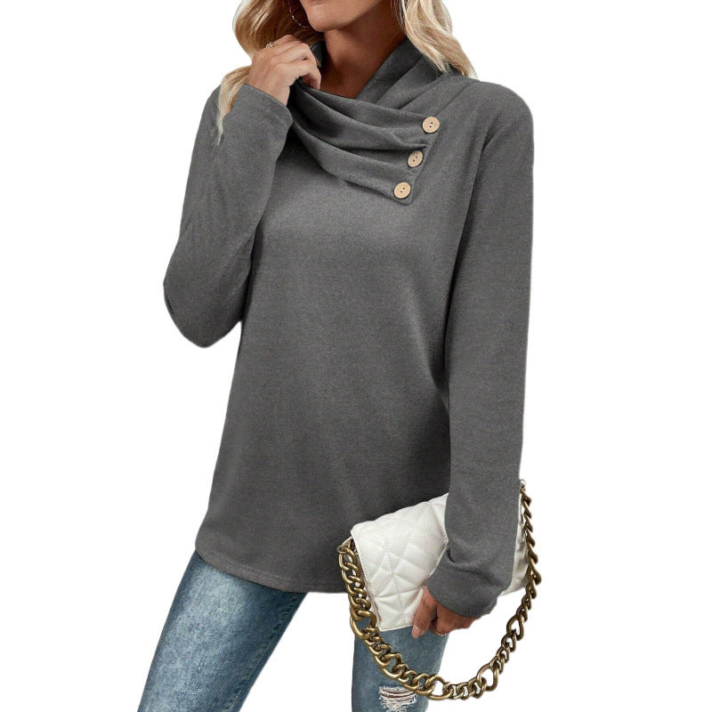 Bring a fresh twist to your wardrobe with this Women's Solid Color Simple Scarf Collar Button Long-sleeve T-shirt. Its playful scarf collar and button details add a fun, stylish touch to a classic long-sleeve tee. Perfect for layering or wearing on its own, this versatile piece keeps you comfy while turning heads wherever you go.
