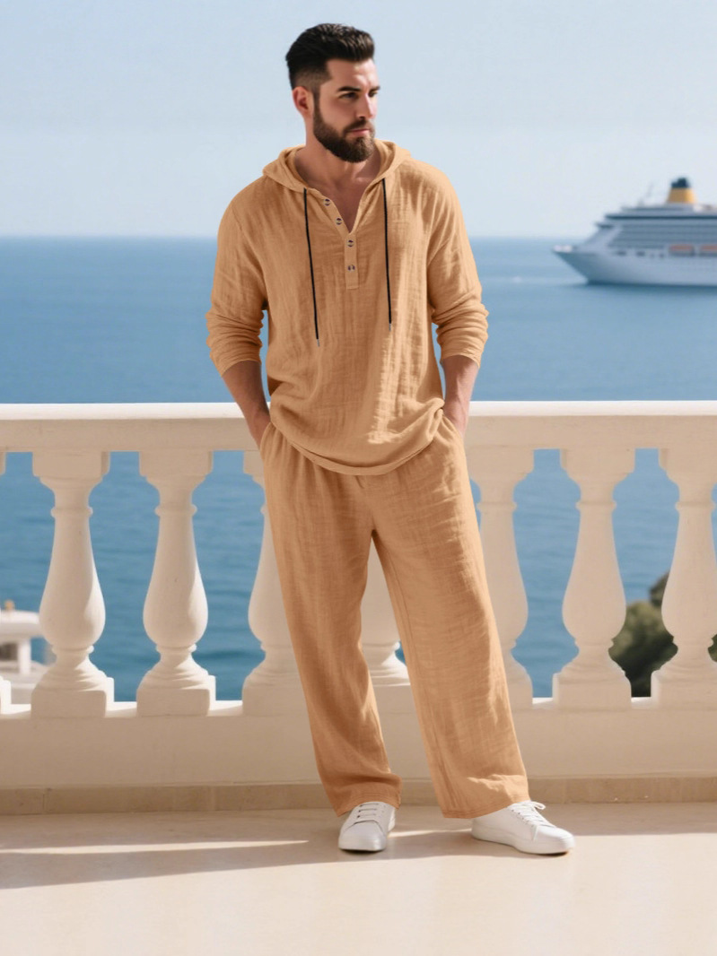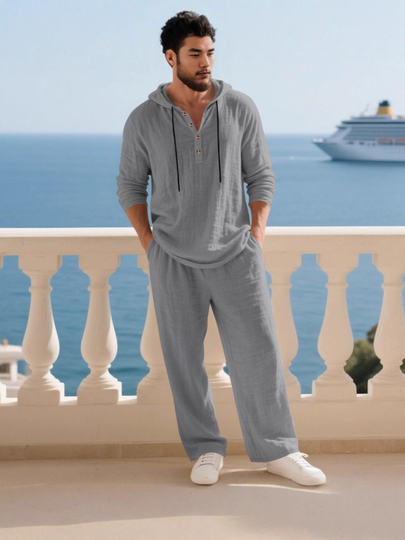 Stay cozy without sacrificing style in this laid-back loungewear set. The long-sleeve top pairs perfectly with matching pants, while the hood adds an extra layer of comfort for those chill-at-home vibes. Whether you're working from home, relaxing on the weekend, or just embracing your inner comfort guru, this set keeps you looking effortlessly put-together. Soft, versatile, and ready for anything your day throws at you.